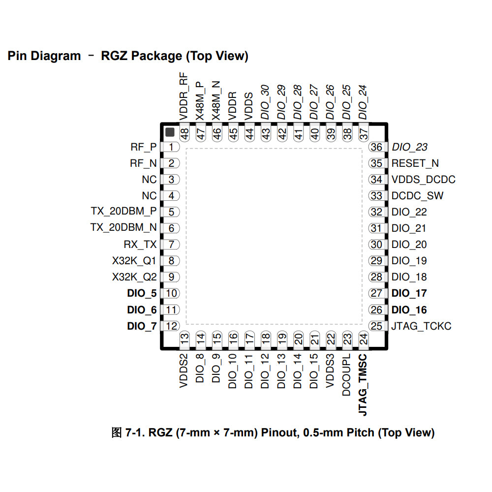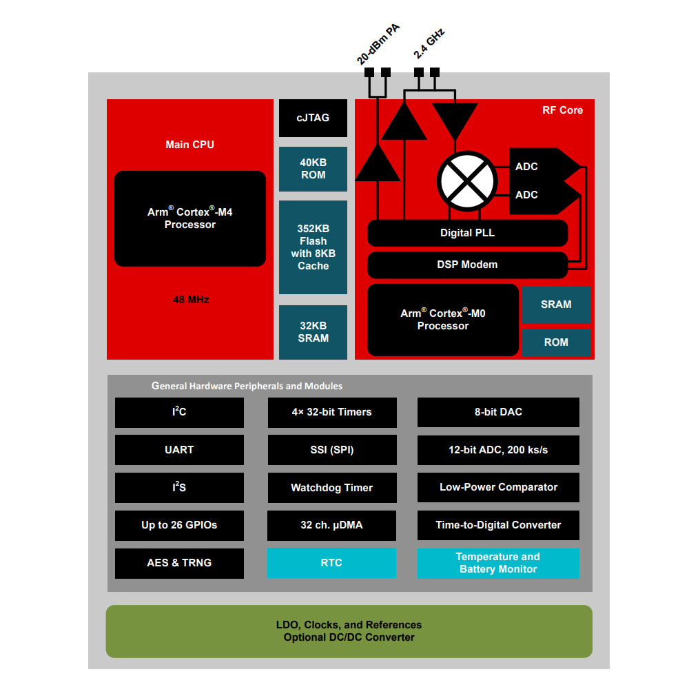 The SimpleLink CC2651P3 device is a single-protocol 2.4-GHz wireless microcontroller (MCU) supporting Zigbee, Bluetooth5.2 Low Energy, IEEE 802.15.4g, TI 15.4-Stack (2.4 GHz). The CC2651P3 is based on an Arm Cortex M4 main processor and optimized for low-power wireless communication and advanced sensing in grid infrastructure, building automation, retail automation, personal electronics and medical applications.