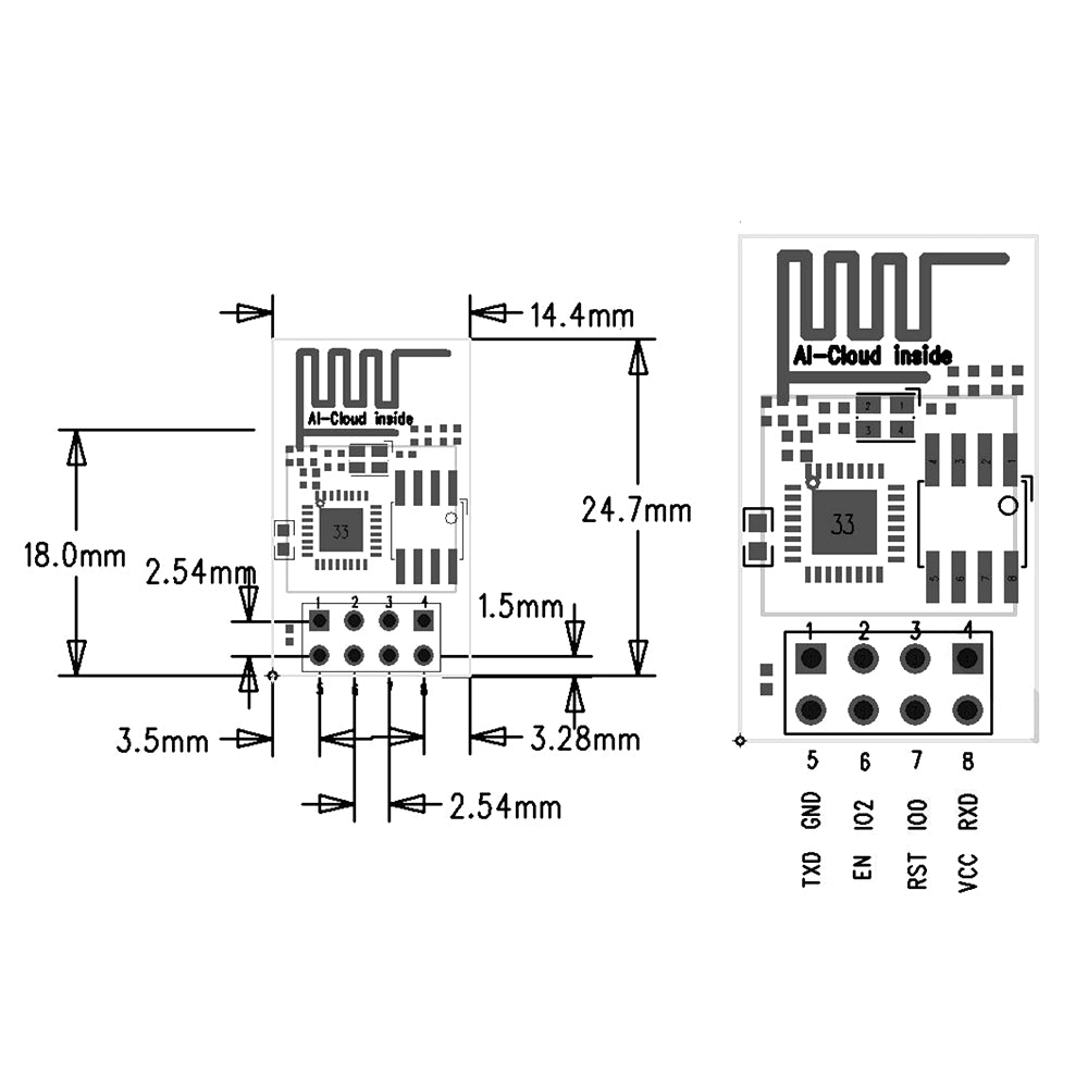 ESP-01 in DIP package, unique plug-in package design, it can be flexible access to existing products, especially for automation,large-scale, low-cost modern production