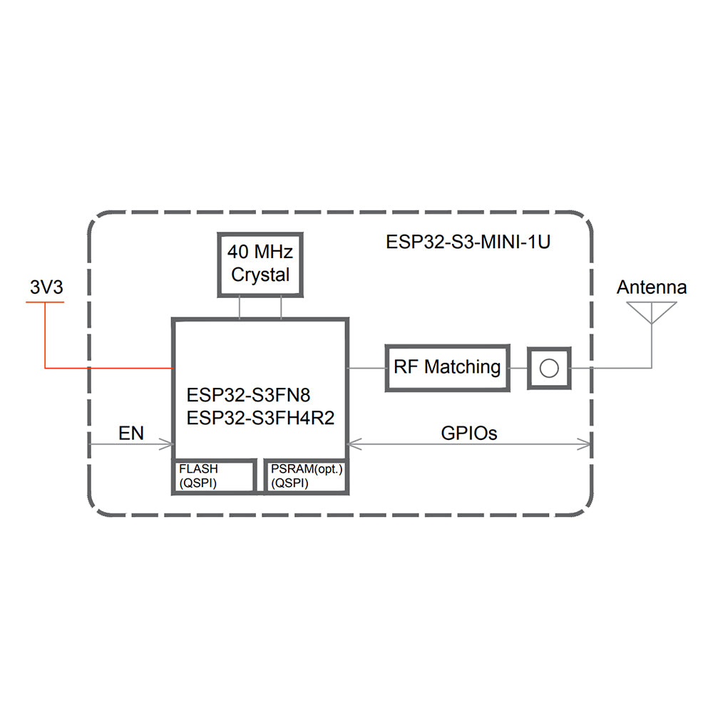 ESP32-S3-MINI-1 and ESP32-S3-MINI-1U are two powerful, generic Wi-Fi + Bluetooth LE MCU modules thatfeature a rich set of peripherals, yet an optimized size. They are an ideal choice for a wide variety ofapplication scenarios related to Internet of Things (IoT), such as embedded systems, smart home,wearableelectronics, etc.ESP32-S3-MINI-1 comes with a PCB antenna. ESP32-S3-MINI-1U comes with a connector for an externalantenna. They feature an up to 8 MB SPI flash and an optional 2 MB SPI Pseudo static RAM (PSRAM). BothESP32-S3-MINI-1 and ESP32-S3-MINI-1U come in two versions, with the ordering code ending with -N8 and-N4R2 respectively. The two versions only vary in flash and PSRAM size.