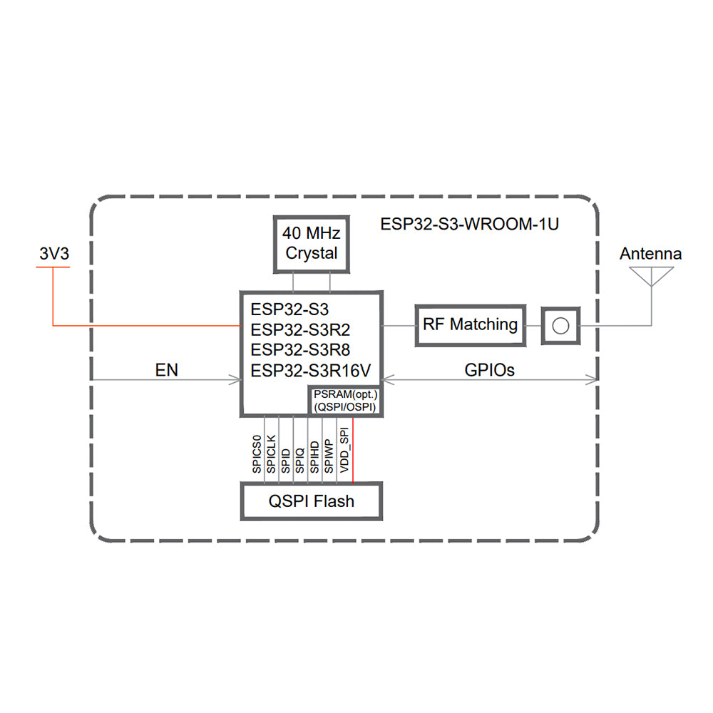ESP32-S3-WROOM-1 and ESP32-S3-WROOM-1U are two powerful, generic Wi-Fi + Bluetooth LE MCU modulesthat are built around the ESP32-S3 series of SoCs. On top of a rich set of peripherals, the acceleration forneural network computing and signal processing workloads provided by the SoC make the modules an idealchoice for a wide variety of application scenarios related to AI and Artificial Intelligence of Things (AIoT), suchas wake word detection, speech commands recognition, face detection and recognition, smart home, smartappliances, smart control panel, smart speaker, etc.ESP32-S3-WROOM-1 comes with a PCB antenna. ESP32-S3-WROOM-1U comes with an external antennaconnector. A wide selection of module variants are available for customers as shown in Table 1 and 2. Amongthem, H4 series modules operate at –40 ~ 105 °C ambient temperature, R8 and R16V series modules operateat –40 ~ 65 °C ambient temperature, and other module variants operate at –40 ~ 85 °C ambient temperature.For R8 and R16V series modules with Octal SPI PSRAM, if the PSRAM ECC function is enabled, the maximumambient temperature can be improved to 85 °C, while the usable size of PSRAM will be reduced by 1/16.