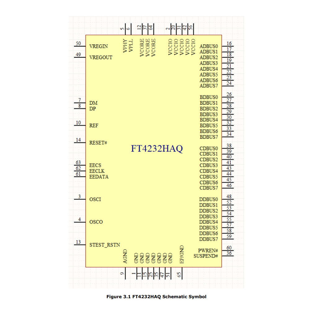 FT4232HA is a USB 2.0 Hi-Speed (480Mb/s) to multi-purpose UART/MPSSE IC that is automotive qualified for AEC temperature grade 2. It has the capability of being configured in a variety of industry standard serial or parallel interfaces.